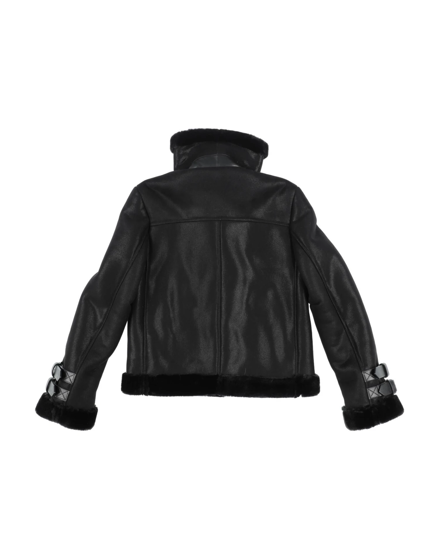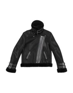 Kunstleder, Kunstpelz, Brand Logo, Riemchen, einfarbig, Klassischer Kragen, Einreiher, lange Ärmel, Innenfutter aus ökologischem Kunstpelz, Reißverschluss, Schnallenverschluss, viele Taschen, Tasche mit Reißverschluss, nicht mit Wasser waschen, chemische Reinigung möglich, nicht Bleichen, Trockner ungeeignet, nicht bügeln, Biker-Jacke, eng geschnitten