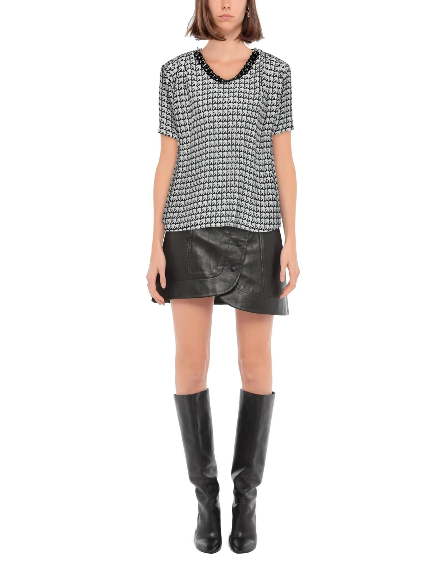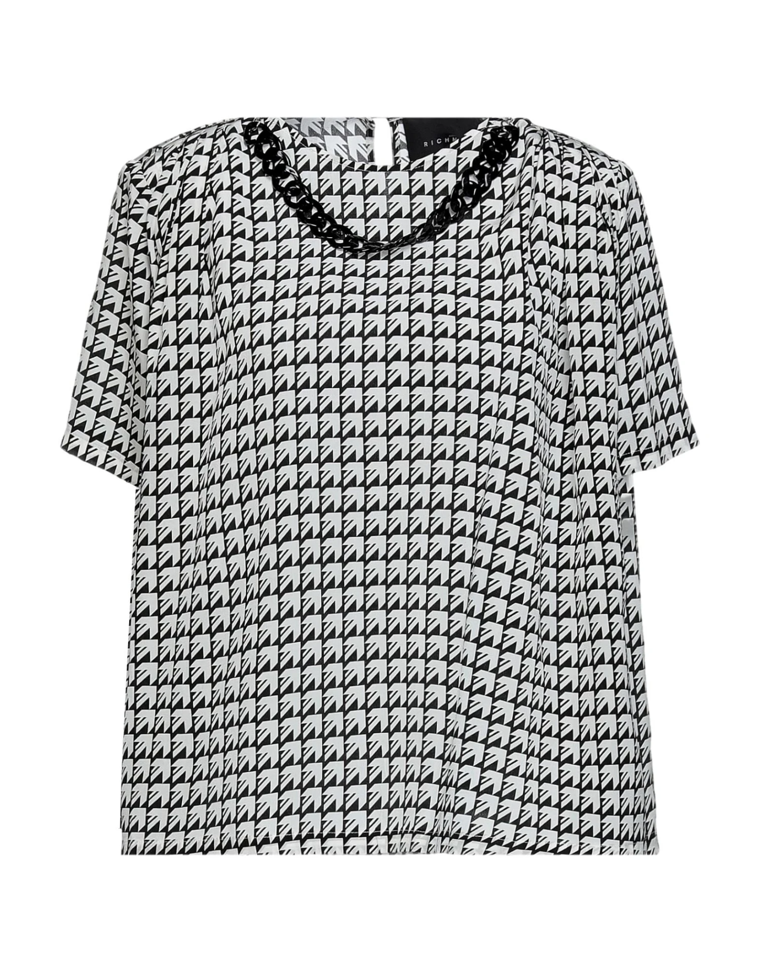 Krepp, abnehmbare Applikation, zweifarbiger Print, Rundhalsausschnitt, kurze Ärmel, 1 Knopf, ohne Taschen