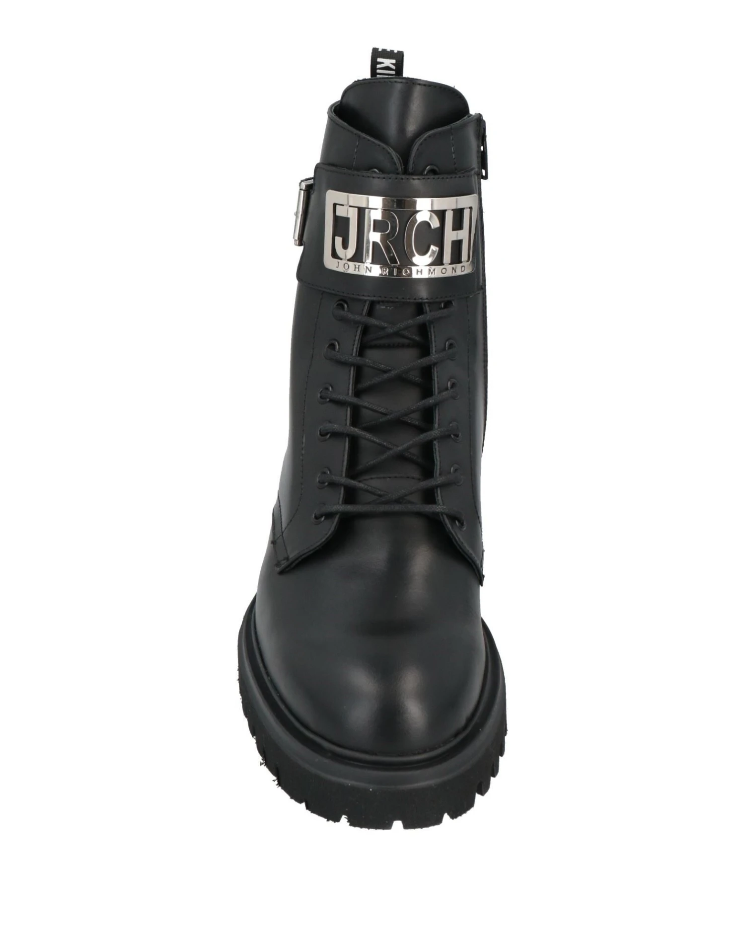 Leder, Brand Logo, Metallapplikationen, Einfarbig mit Applikationen, Rückseite aus Leder, Reißverschluss, Schnürverschluss, runde Spitze, Blockabsatz, Absatz aus abriebfestem Gummi, robuste Sohle, Enthält nichttextile Teile tierischen Ursprungs., Combat Boots