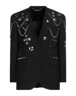 Tuch, Nieten, abnehmbare Applikation, Einfarbig mit Applikationen, V-Ausschnitt, Einreiher, lange Ärmel, gefüttert, 1 Knopf, viele Taschen, Einreiher, eng geschnitten