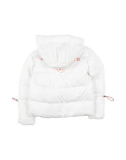 Logo Druck außerhalb der Schulter weiße Mädchen Kleid Crew Neck Ausschnitt, Perfekt für aktive Kinder, Perfekt für das tägliche Styling, Stretch-Baumwolle, Lockere Passform, Grafik & Text Nicht bleichen, Nicht chemisch reinigen, Separat waschen, Mit ähnlichen Farben waschen, Nicht im Trockner trocknen, Auf links waschen und bügeln, Bügeln bei mittlerer Hitze, 30°C Feinwäsche