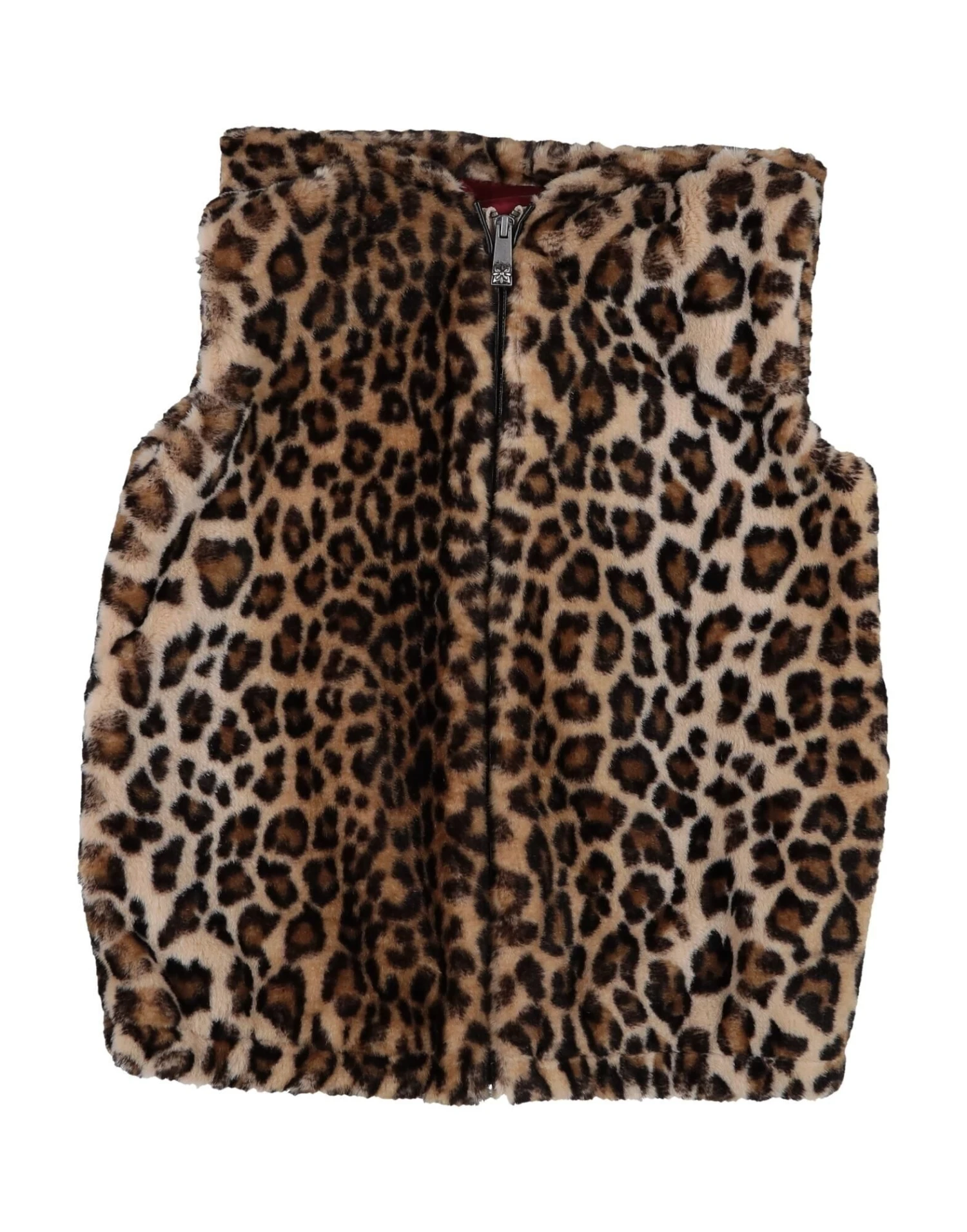 Kunstpelz, Logo, Lederapplikationen, Leopardenmuster, Einreiher, Reißverschluss, Kapuzenkragen, viele Taschen, ärmellos, gefüttert, nicht mit Wasser waschen, chemische Reinigung möglich, nicht bügeln, nicht Bleichen, Trockner ungeeignet, Enthält nichttextile Teile tierischen Ursprungs., eng geschnitten