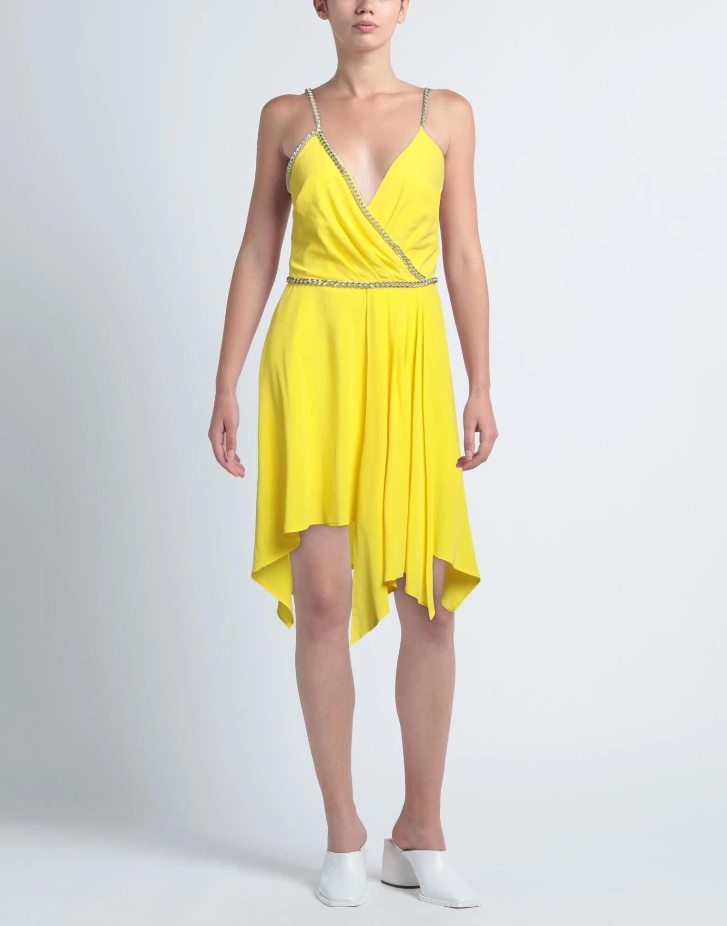Krepp, Metallapplikationen, einfarbig, V-Ausschnitt, ärmellos, Integrierter Slip, Reißverschluss, ohne Taschen, A-Linienmodell, eng geschnitten
