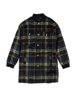 Flanell, ohne Applikationen, Schottenmuster, Rollkragen, Einreiher, lange Ärmel, gefüttert, Druckknöpfe, viele Taschen, nicht mit Wasser waschen, Trockenreinigung mit milden Lösungsmitteln, nicht Bleichen, Trockner ungeeignet, nicht bügeln, Einreiher, eng geschnitten