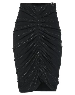Tuch, Strass, Rüschen, einfarbig, Regular fit, gefüttert, Reißverschluss, ohne Taschen, Stretch, Bleistiftmodell, eng geschnitten