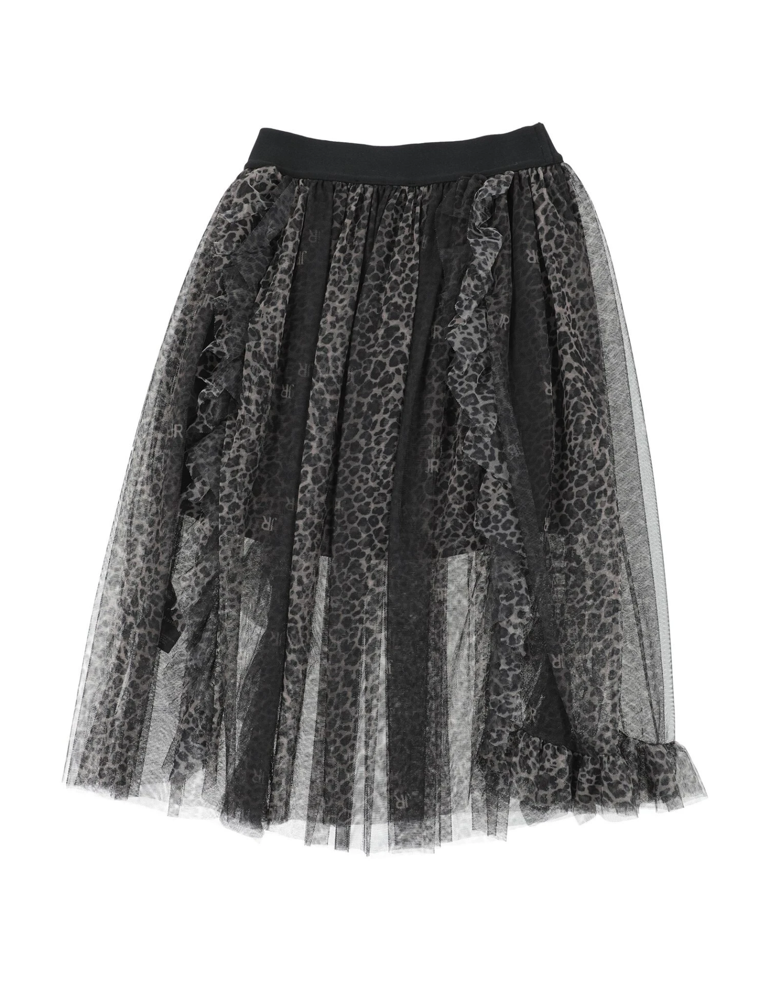 Tüll, Brand Logo, Rüschen, Leopardenmuster, Taillenzug, gefüttert, ohne Taschen, nicht mit Wasser waschen, Trockenreinigung mit milden Lösungsmitteln, nicht Bleichen, Trockner ungeeignet, nicht bügeln, eng geschnitten