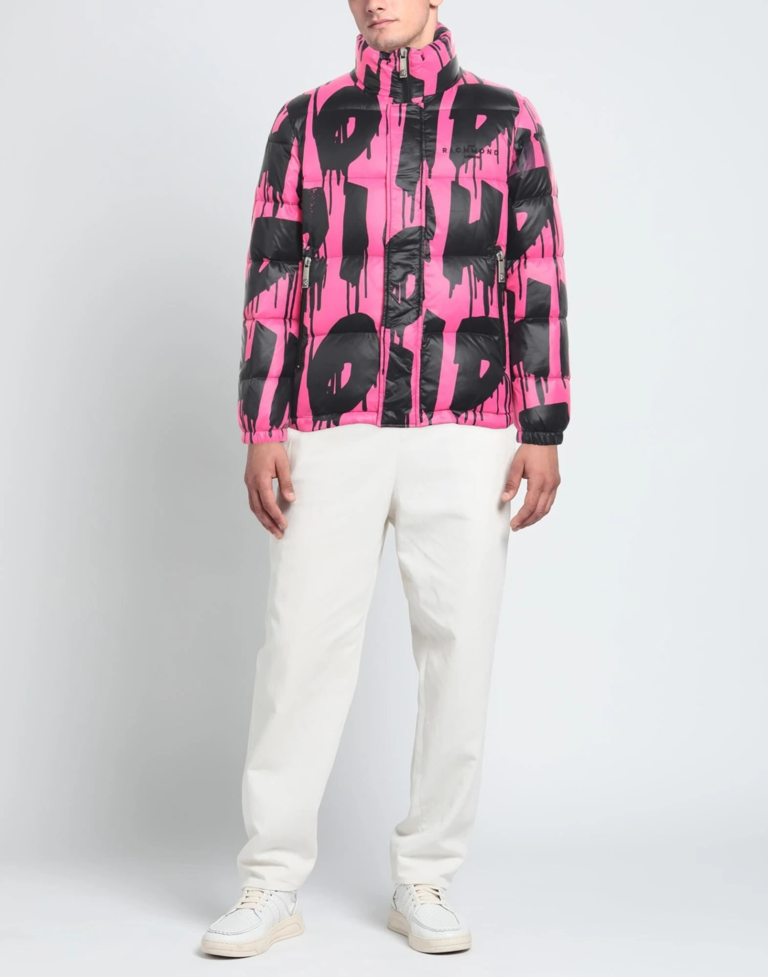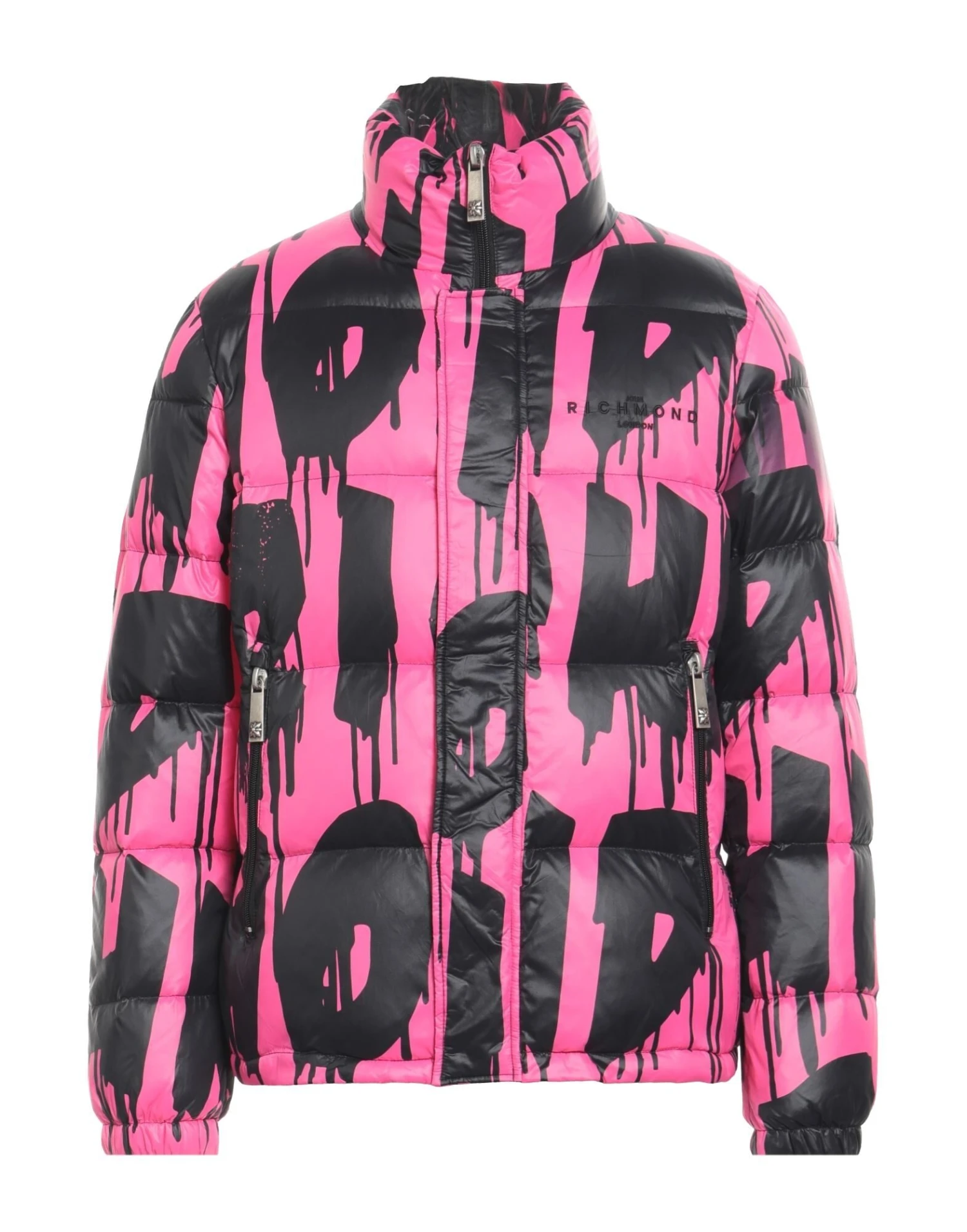 Hightech-Gewebe, gesteppt, Brand Logo, zweifarbiger Print, Rollkragen, Einreiher, lange Ärmel, mit Entenfedern gefüttert, Druckknöpfe, Reißverschluss, viele Taschen, Enthält nichttextile Teile tierischen Ursprungs., Einreiher, weit geschnitten