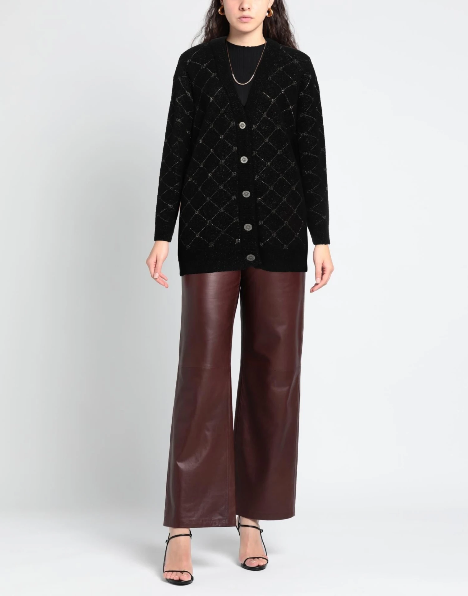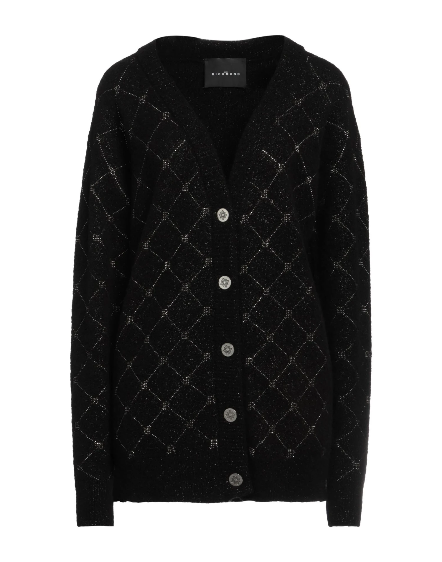 Handgestrickt, Lamé-Look, Mittelschwerer Strick, ohne Applikationen, Designermotiv , tiefer Ausschnitt, lange Ärmel, Knöpfe, ohne Taschen, eng geschnitten