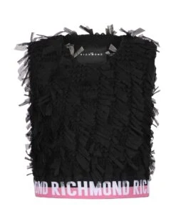 Elegantes Top für besondere Anlässe mit Fransen in Schwarz Crew Neck Ausschnitt, Elastisch, Perfekt für aktive Kinder, Perfekt für besondere Anlässe, Perfekt für festliche Momente, Fransen-Details Nicht bleichen, Nicht im Trockner trocknen, Bei niedriger Temperatur bügeln, Empfindlich, In Handwäsche kalt waschen