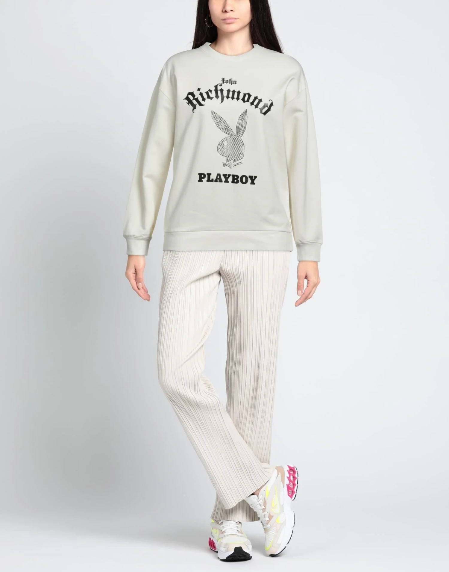 Sweatshirtstoff, Brand Logo, Strass, einfarbig, Rundhalsausschnitt, lange Ärmel, Gerippte Bündchen, Innenfutter aus leichtem Sweatshirtstoff, ohne Taschen, Stretch